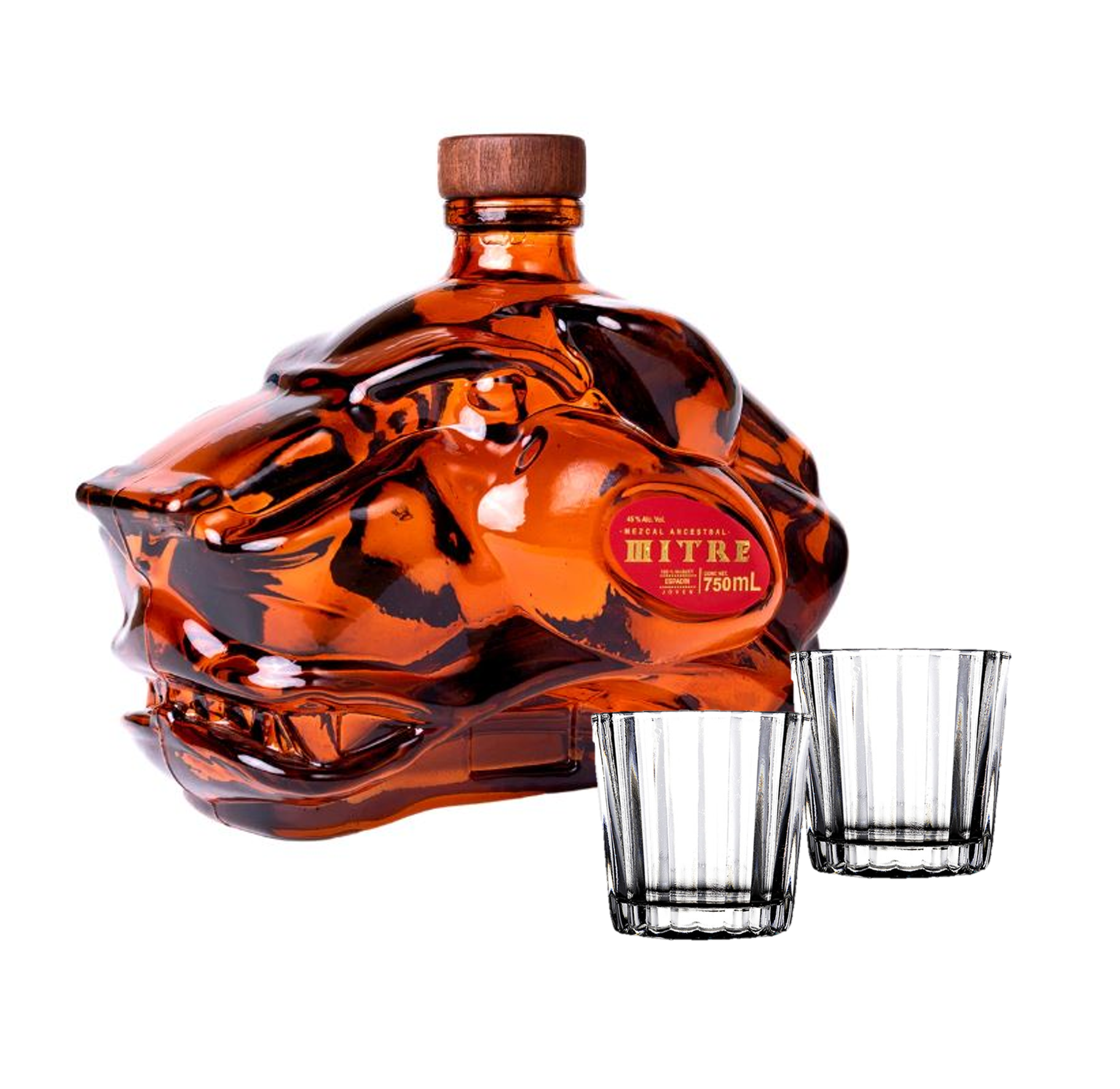 Mezcal Cabeza De Jaguar Mitre Ancestral 750 Ml + 2 Mezcaleros